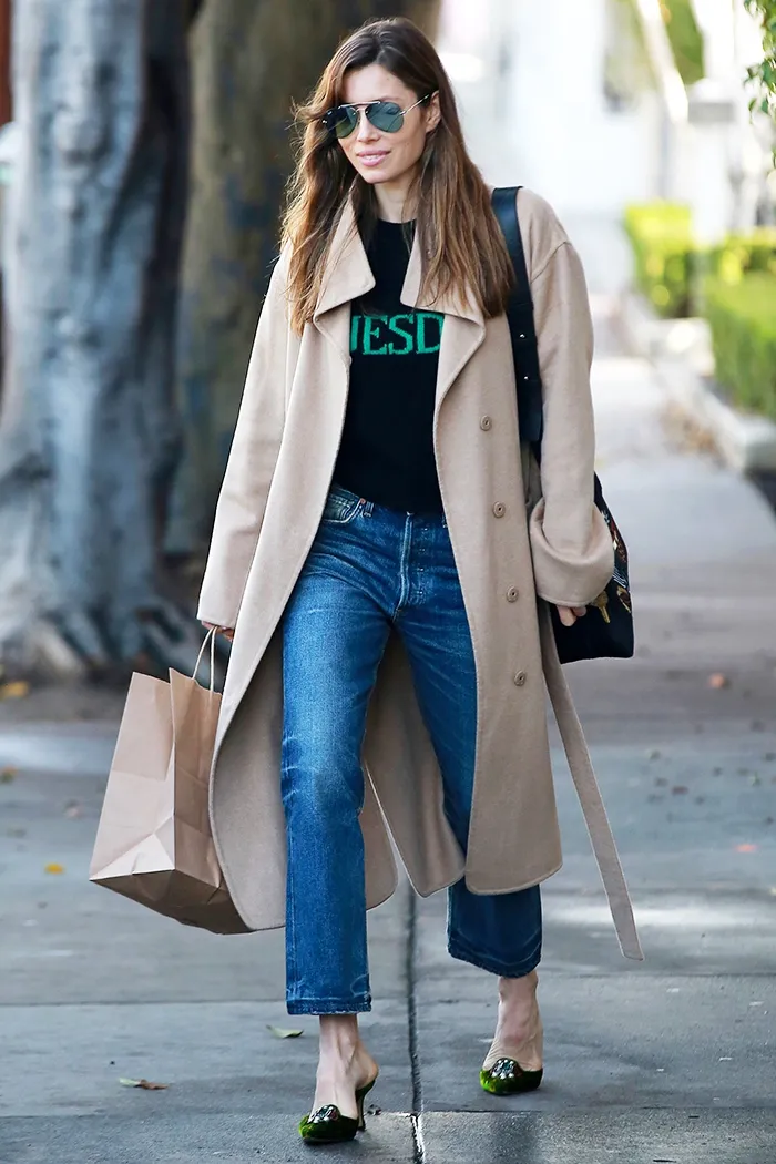 If you’re inspired by Biel’s look, here are a few easy styling ideas to recreate her transitional outfit: